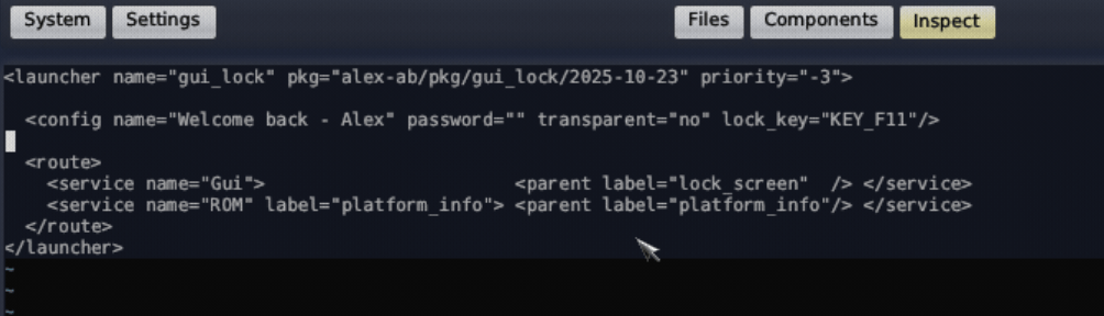With the presented configuration you are now able to configure a lock screen component for Sculpt 25.10 which can be activated via a global-key, e.g. F11.