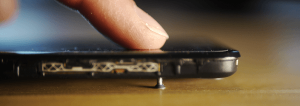 After carefully turning around the phone with the lose screw inserted, the entire phone has magically turned into one giant reset button. Even better, the tactility of pressing the button is rather satisfying.