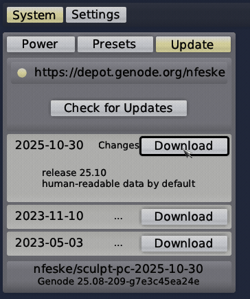 Sculpt OS users can find the experimental variant in the system-update dialog when selecting nfeske as software provider. Download and install version 2025-10-30, and reboot your machine.